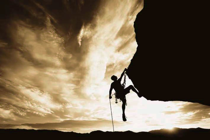 Ein schwieriger Aufstieg schreckt den entschlossenen Bergsteiger nicht ab; er genießt die Herausforderung. Nichts kann ihn davon abhalten, weiter zu klettern, bis er sein Ziel erreicht hat. Keine Widrigkeit kann ihn zur Umkehr bewegen. Wenn er auf die steilen Felsvorsprünge über sich schaut, konzentriert er sich nicht auf die Gefahr, sondern konzentriert sich auf die Stellen, an denen seine Zehen Halt finden und auf die schmalen Felsvorsprünge, das ihn zum Gipfel bringt. Er lässt sich nicht durch das Unwirtliche seiner Umgebung abhalten oder dem Tribut, den dieser Aufstieg seinem Körper abverlangt; er wird durch den Gedanken an den Triumph vorwärts und aufwärts getrieben.