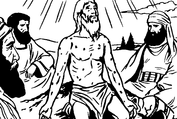 Die Tage vergingen, und Hiob saß immer noch auf seinem Haufen von Asche und schabte verdrießlich seine schmerzhaften Wunden. Seine Haut fing an sich schwarz zu färben und zu schälen. Sein Körper brannte vor Fieber, und nach und nach verließen ihn die wenigen Diener, die übrig geblieben waren. Seine Frau und all seine Verwandten verachteten ihn. Sogar kleine Kinder und die schmutzigsten Bettler mieden ihn. Sie hielten höchstens an, um sich über ihn lustig zu machen und ihn anzuspucken. (Hiob 7,3; 19,13-20; 30,1,7-10,30)
