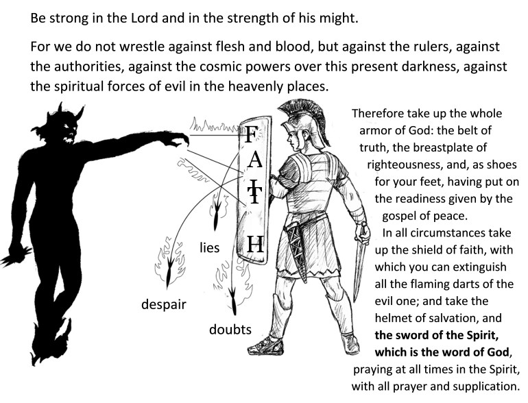 Im Neuen Testament werden Gottes Kinder – alle Christen, die den Herrn wirklich kennen und lieben – dazu aufgefordert „Soldaten für Jesus Christus“ zu sein. (2.Timotheus 2,3.4) Gott stellt Seine Kirche bildlich als eine geistige Armee dar, die in einen unaufhörlichen Krieg gegen Satan und all seine bösen Mächte verwickelt ist. In Seinem Wort heißt es: „Denn wir kämpfen nicht gegen Menschen aus Fleisch und Blut, sondern gegen die bösen Mächte und Gewalten der unsichtbaren Welt, gegen jene Mächte der Finsternis, die diese Welt beherrschen, und gegen die bösen Geister in der Himmelswelt.“ – Epheser 6,12