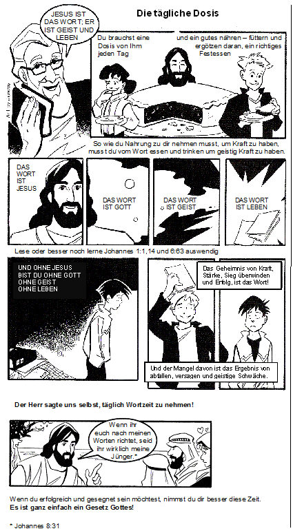 So wie du Nahrung zu dir nehmen musst, um Kraft zu haben, musst du vom Wort essen und trinken um geistig Kraft zu haben.
