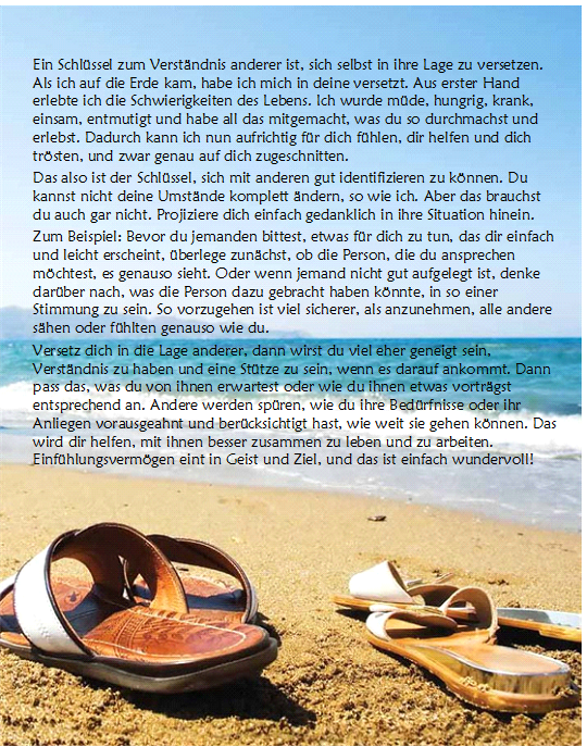 Empfange das Geschenk meiner selbstlosen Liebe für andere. Wie empfängst du es? Genauso wie du jedes andere Geschenk von mir annehmen würdest. Du bittest, du akzeptierst und du glaubst daran. Wie setzt du es in die Tat um? Einen Schritt nach dem anderen und eine liebevolle Tat nach der anderen.
