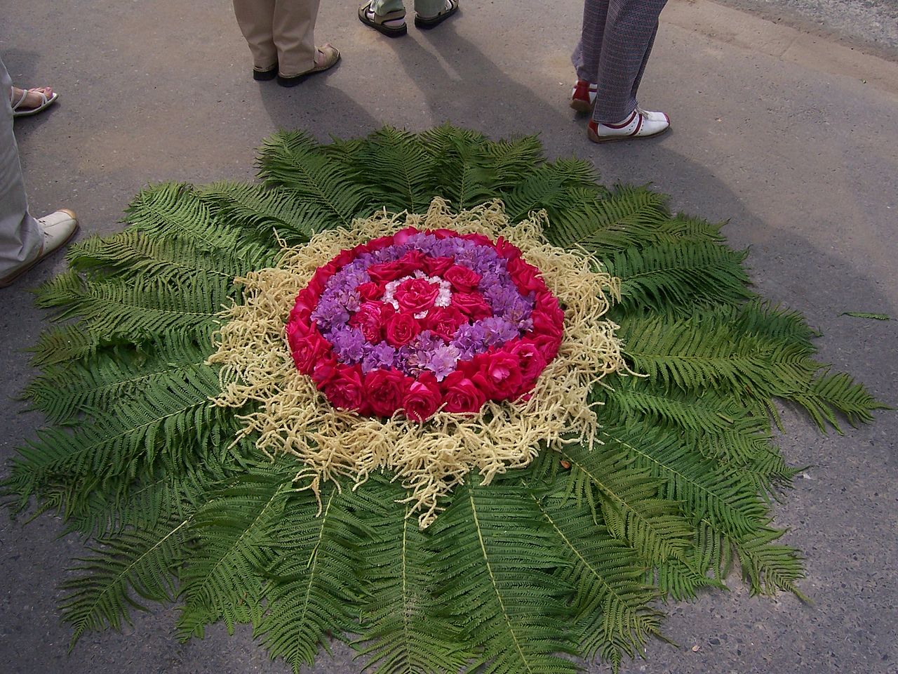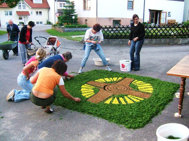 Fronleichn-7Schauen wir doch als Beispiel das Fronleichnamsfest an. Welcher Evangelikale versteht schon, was das soll (und Ungläubige erst recht nicht) und was schon der seltsame Name bedeutet? Jedoch was ich als Kind sehr mochte, war, in den Nachbarort gehen und all die schönen Blumenteppiche und -Läufer, die durch den ganzen Ort verliefen, anzusehen. Wahre Kunstwerke aus Blumenblättern, Gräsern und Farnen. Ich konnte mich kaum satt sehen. Ja die Prozession fand ich immer noch lächerlich und hab nicht verstanden was das soll, aber das Fest als solches mit den Blumen fand ich wunderbar. Ich stellte mir auch die Vorbereitungen vor – die schönste Freude ist ja die Vorfreude – Menschen die zusammenarbeiteten und den Resultaten nach sicherlich dabei eine Menge Freude und Spaß hatten. Wir alle brauchen Gemeinschaft und wenn das dann noch mit kreativem Schaffen verbunden ist, dann ist das doch, was man Leben nennt. Was ich sagen will, ich lerne, bei Sachen wie diesem Fronleichnamsfest nicht eine Art heidnische Anbetungsart zu sehen, sondern das menschliche, was in den Menschen dabei vor sich geht. Die Leute denken doch unweigerlich an Jesus wenn sie an den Blumenteppichen arbeiten, ihre Gedanken sind ein wenig auf den Himmel eingestellt – ist das auch was Gott sieht? Oder sieht er nur, wie heidnisch-ähnlich das ist wo er doch sagte, dass wir ihn im Geist und in der Wahrheit anbeten sollten?